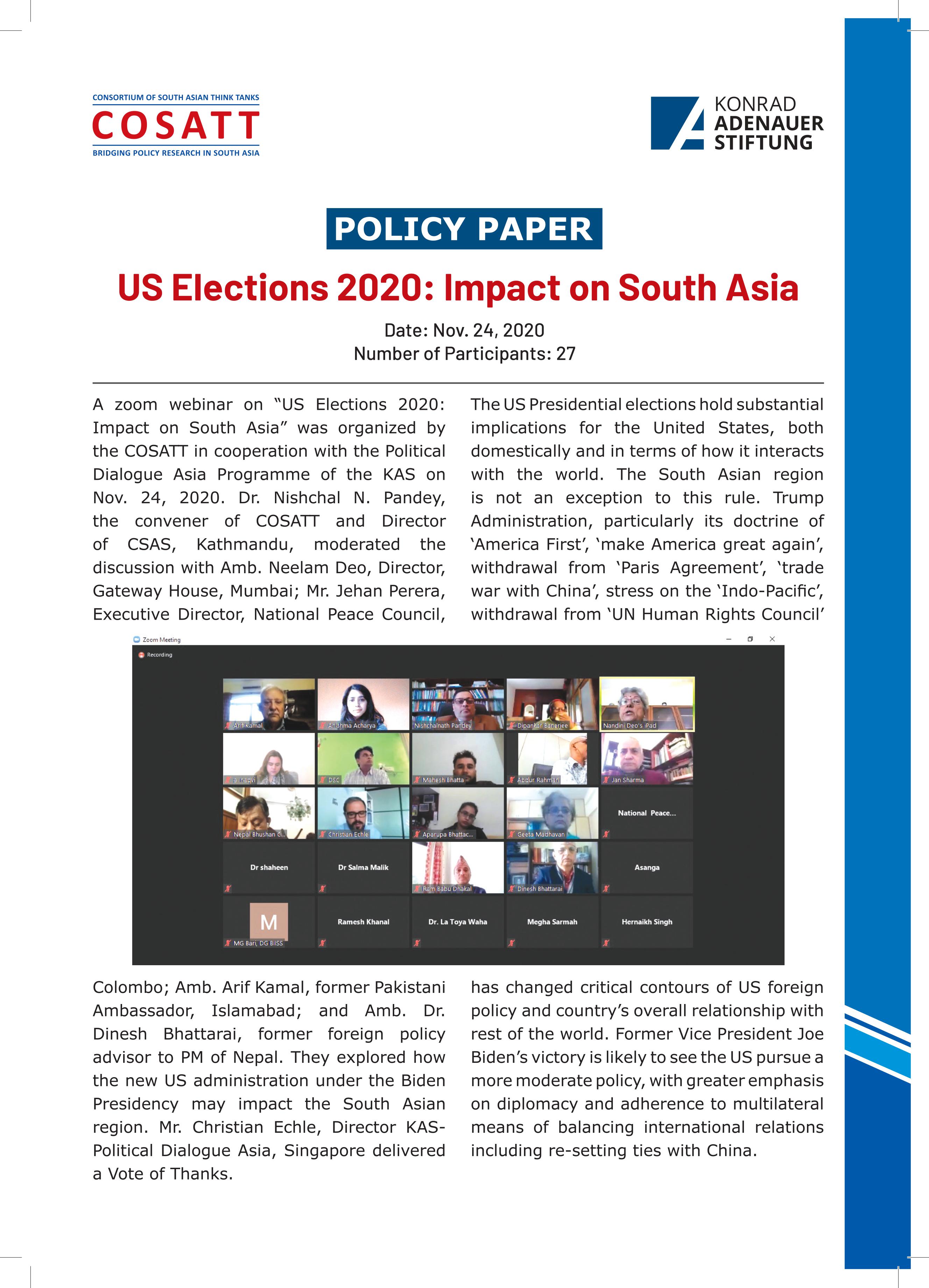 COSATT-KAS publication \'Impact of COVID-19 on the SDGs of South Asia\' was Launched